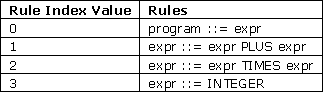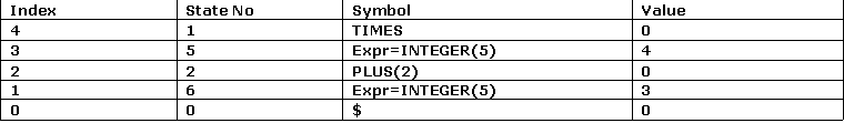 Reduce Rule Index =action value – TotalState => 9-7= 2 => expr ::= expr TIMES expr