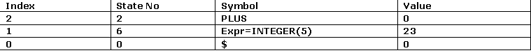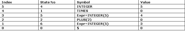 Action value< yyNState then push to stack push(4,INTEGER,5)