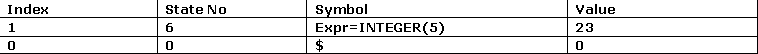 Reduce Rule Index =action value – TotalState => 10-7= 3 => expr ::= INTEGER