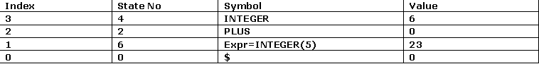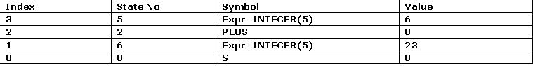 Reduce Rule Index =action value – TotalState =>8-7= 1=> expr ::= expr PLUS expr