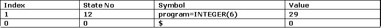 Reduce Rule Index =action value – TotalState => 7-7= 0=> program ::= INTEGER