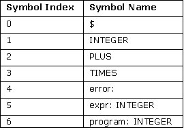 • yyRuleInfo : From the Rule Index value , we can map this array index value